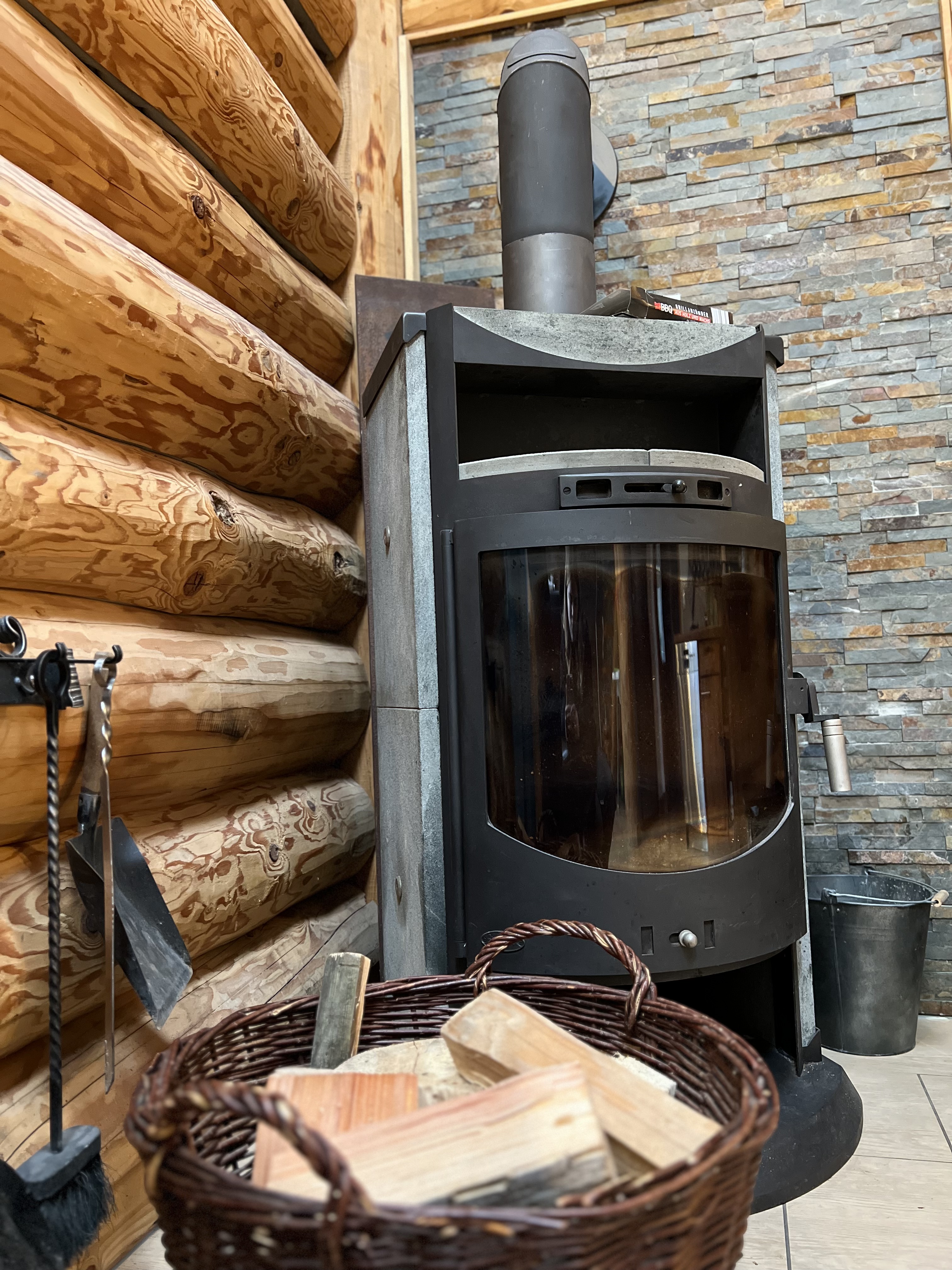 Der Eingangsbereich verfügt über eine große Garderobe. Die Einrichtung im Ferienhaus Fledermaus ist wie die anderen Chalets in ökologischer Blockbauweise mit wohngesundem Klima funktional gehalten und im Erdgeschoss barrierefrei. Jede Haushälfte verfügt über einen Kaminofen.